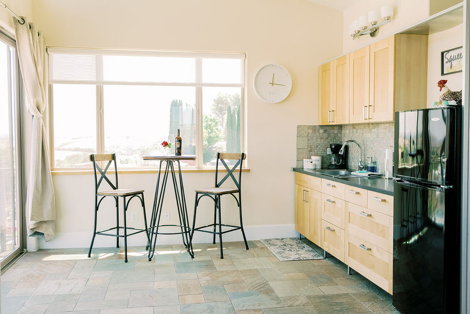 Our vineyard/home is located minutes from hundreds of wineries, shopping, amazing farmers markets, and also to downtown Paso Robles, Templeton, Cambria, Atascadero, and San Luis Obispo. The Suite has its private, locked entry, sweeping vineyard views from all of its oversized windows, and a private balcony for your morning coffee or evening sip of wine. Wake up to the sunrise, and close your eyes to the Sunset, all from this beautifully furnished Suite. The room features a small kitchen, gas fireplace, big flat screen TV, luxurious leather sofa , new king size bed with comfy sheets and luxurious bedding. SPA DAY enjoy a gorgeous, walk- in shower overlooking our vineyard estate.. Plenty of parking, and internet is fast and included. The suite also has its own air-condition/heating unit aside from main house. Laundry facilities if you should need them. Let us know if your celebrating anything special so we can be ready! Room features a king sized hybrid mattress. Plenty of parking for all size vehicles. All the amenities of a 5 star hotel for half the price! Don't miss our favorite breakfast spots here in Paso, Brunch Paso, Thomas Hill Organics for Sunday Brunch, The Cowgirl Cafe, and in Templeton, Kitchenette FYI, Fall is Harvest time, so be aware that it can happen anytime mid Sept. through October!